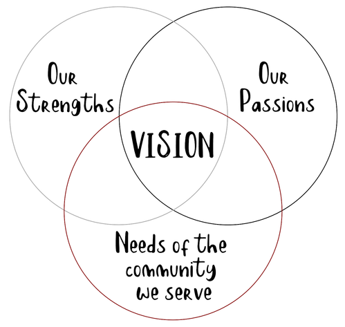 The vision of Imago Dei - or how we walk out our mission - is drawn from a combination of three things: Our Strengths, Our Passions and the Needs of the Community We Serve. Working from these three categories helps us foster a church body of authentic believers, walking out the mission given to us by Jesus because we desire to witness a city transformed in every way by the life changing reality of the gospel.